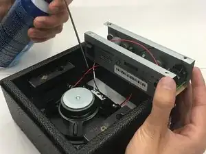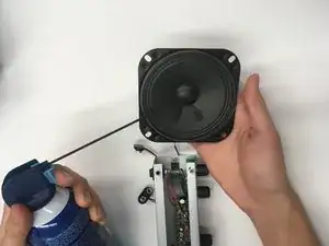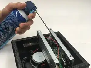Распылите воздух на переднюю и заднюю часть чёрной сетки, расположенной на усилителе.