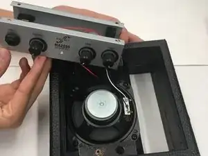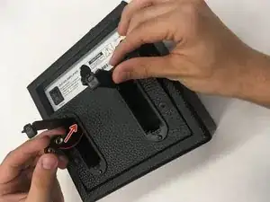 Найдите два клеммных контакта батареек. По мере медленного снятия задней панели усилителя направьте два контакта обратно в корпус усилителя так, чтобы они больше не находились внутри отсеков для батареек.