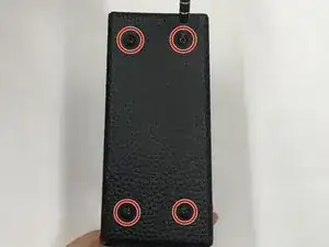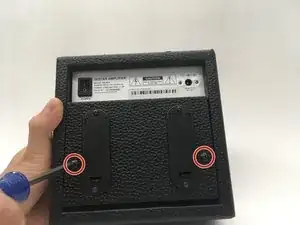 Выверните два винта длиной 25 мм из задней панели. Два винта 25 мм расположены по левому и правому краю отсека для батареек; используйте крестовую отвёртку Phillips #0.
