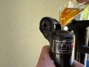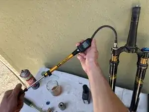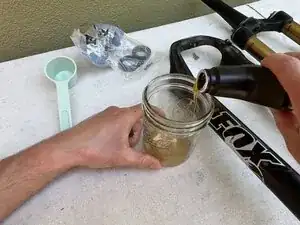 В этой вилке использовалось одинаковое количество масла для каждой стороны. Если производитель рекомендует разное количество масла для каждой стороны, целесообразно отмерить и закачать масло в каждую сторону отдельно.