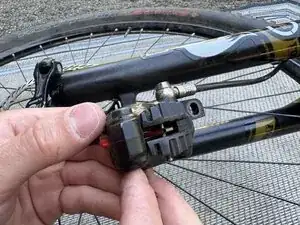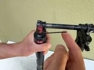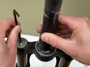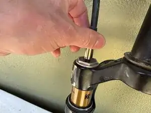 Используйте небольшой ключ-allen (в этом случае использовался 2,5 мм), чтобы выпустить весь воздух из вилки.