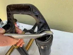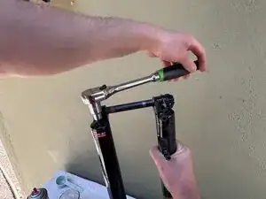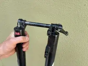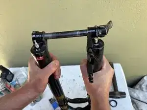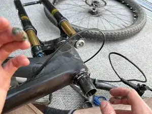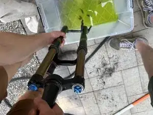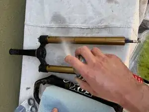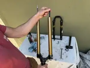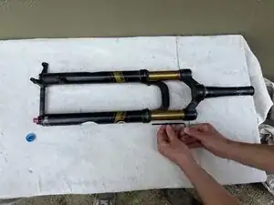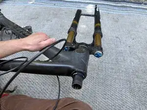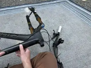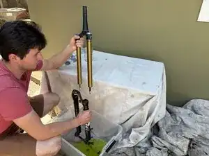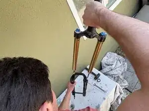 Будьте готовы к тому, что велосипед останется в этом положении до завершения обслуживания вилки (возможно несколько часов).