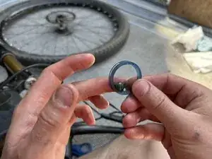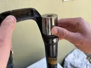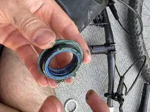 Вставьте распорную шайбу руля обратно на шток вилки.