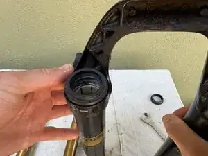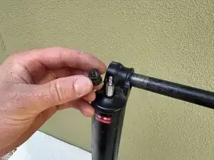 Снимите крышку с левой стороны вилки, повернув против часовой стрелки, чтобы открыть воздушный клапан.