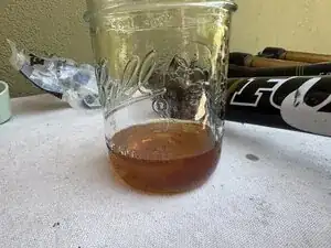 Подготовьте большую ёмкость, чтобы собрать масло внутри вилки.