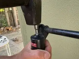Используйте молоток с мягкой головкой, чтобы слегка постукивать по торцовому ключу.