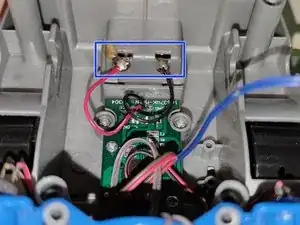 Если у вас все винты выпали, вы можете сдвинуть два синих мусорных бака вниз, чтобы легко разместить два скрытых винта.