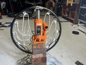 Установите гидравлический домкрат на деревянную поверхность внутри кольца. Отрегулируйте его положение так, чтобы при выдвижении он приходил в контакт с местом изгиба.