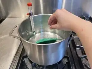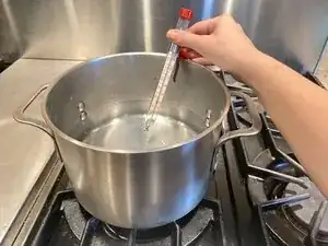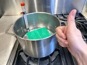 Нагрейте воду до примерно 100 градусов по Фаренгейту. Используйте термометр для контроля температуры.