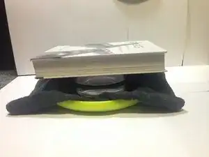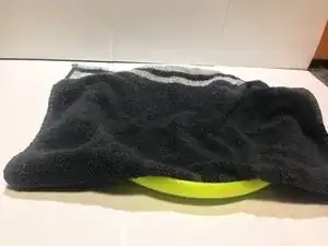 Поместите диск фрисби на ровную поверхность выпуклой стороной вверх. На диск уложите полотенце.
