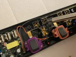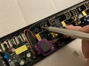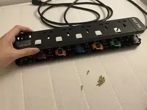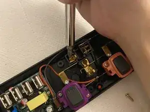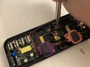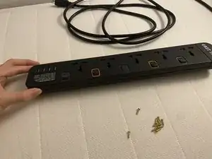 Используйте крестовую отвертку №0, чтобы выкрутить винты 6 мм на задней панели сетевого фильтра.