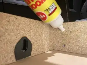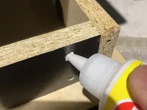 Осторожно выдавите древесный клей в отверстия для винтов.