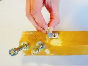 Затяните любые существующие крепежные элементы, удерживающие ножки к основанию стула, перед тем как закрепить уголок к стулу.