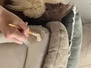 Нанесите краску для кожи, которая соответствует цвету вашего дивана, поверх тяжелого