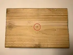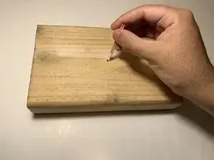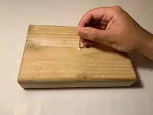 Используя зубочистку как мерило, измерьте глубину отверстия для винта и определите количество зубочисток, необходимых для заполнения отверстия.