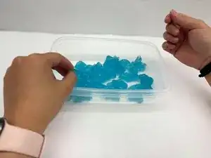 Разломите жесткий слайм на маленькие кусочки и поместите в контейнер.