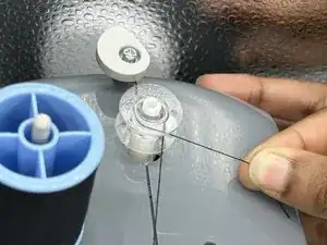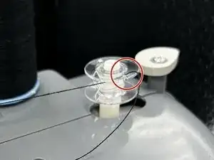 Протяните нить через верхнее отверстие шпульки.