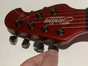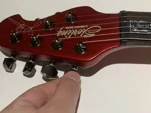 Настройте струны до желаемой высоты звучания, сыграв открытую струну (не зажимая лады) и регулируя колки.