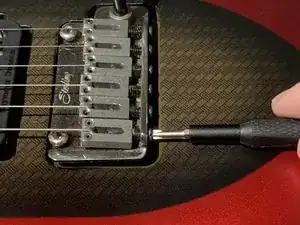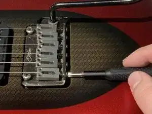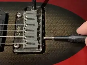 Если высота тона струны была понижена, слева от центра, сдвиньте седло в сторону грифа (ослабьте). В противном случае, если высота тона была повышена, сдвиньте седло в сторону бриджа (затяните).