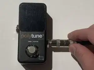 Подключите гитару к хроматическому тюнеру с помощью гитарного кабеля 1/4", убедившись, что кабель полностью вставлен.