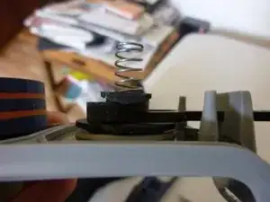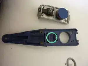 Пружина должна быть помещена в ручку (см. изображение с зеленым кругом)