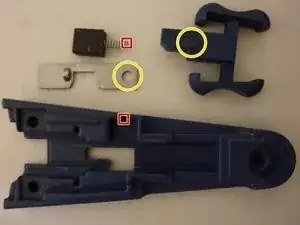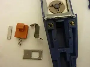 Теперь вы можете соединить оранжевую часть с пружиной и соответствующей металлической пластиной (как показано на изображении).