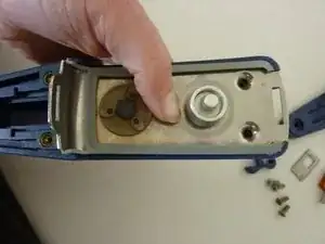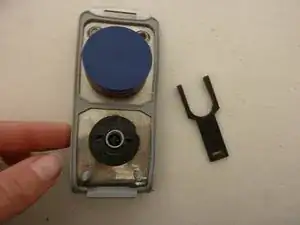После этого протолкните металлическую пластину в вырез и прижмите пружину за малой металлической пластиной.