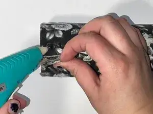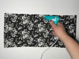 Нанесите горячий клей на участок между краями ткани.