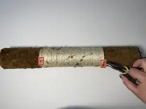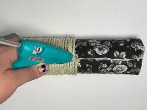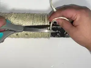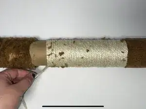 Прикрепите новую сизалевую верёвку, прижав её к горячему клею.