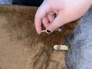 Нанесите каплю горячего клея на закреплённый участок ткани.