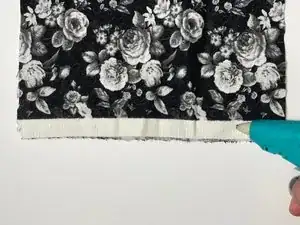 Нанесите полосу горячего клея по нижнему краю ткани и загните край, чтобы обработать срез.