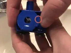 Установите насос обратно в фонтанчик. В дне основания есть выемка (показана на фотографии). Именно туда устанавливается насос.