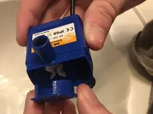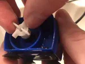 Извлеките насос из фонтанчика, захватив обе стороны насоса и основание, затем потянув насос наружу.