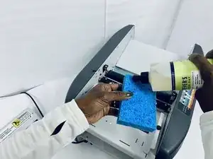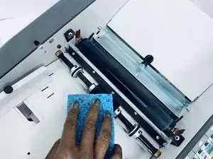 Любой тёмный (чёрный) остаток на губке указывает на накопление чернил, поэтому продолжайте чистку, пока все остатки не исчезнут.