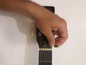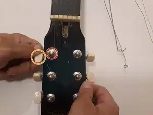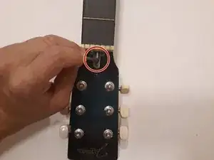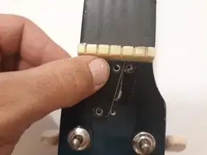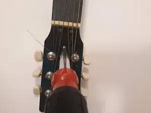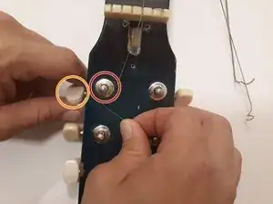 Переустановите струны, прикрепив их обратно к головке грифа.
