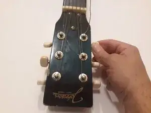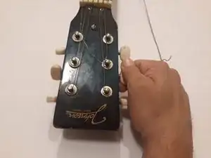 Поверните колки, чтобы снять натяжение со струн, затем потяните струны и отсоедините их от головки грифа