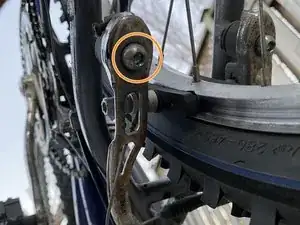 Ослабьте 6‑мм шестигранный винт, который крепит шумящий тормоз к раме.