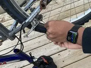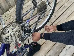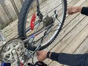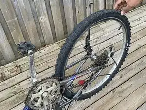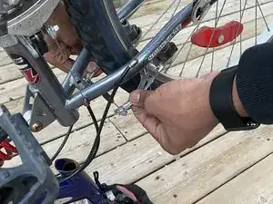 Определите тормоз, который трёт об обод, прокручивая каждое колесо и прислушиваясь к контакту.