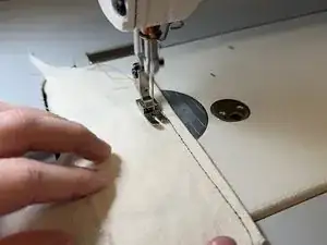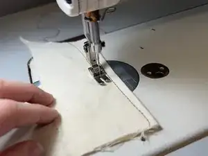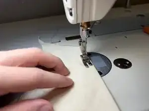 Прошейте ещё одну прямую линию по обрезку ткани рядом с предыдущей линией.