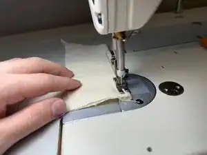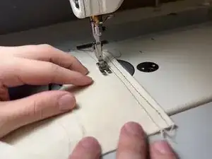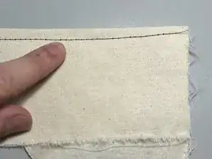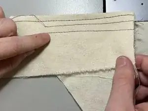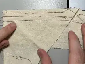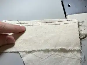 Проверьте натяжение нити, прошив ещё одну прямую линию по обрезку ткани рядом с предыдущей линией.