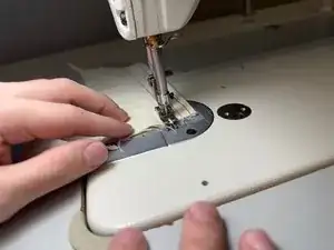 Будьте осторожны: держите пальцы подальше от иглы при включённой машине.