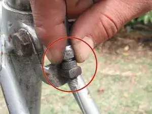 Теперь, когда гайка ослаблена, потяните кабель сильнее или слабее, чтобы отрегулировать исходное состояние тормозного зажима.