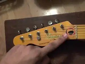 Перед началом работы ослабьте струны гитары, оставив место для их манипуляции без риска перелома.