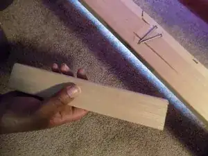 Вертикально поместите заранее отпиленную деревянную планку под отсоединённую ламель.