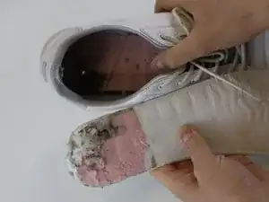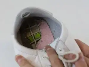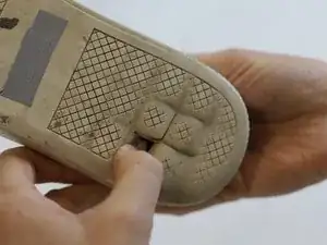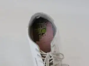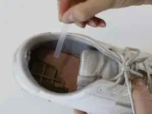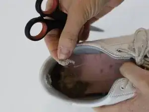 Используйте ножницы, чтобы удалить оставшиеся части стельки вокруг дырки в подошве.