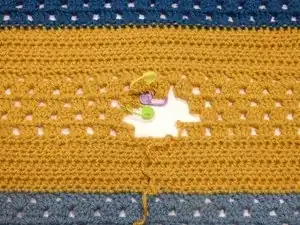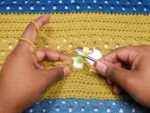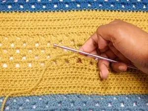 Примечание: Точный метод ремонта будет зависеть от конструкции пледа и используемого рисунка вязки. Этот гид лучше всего подходит для проектов, связанных с тремя группами двойных столбиков, также известного как бабушкин узор.