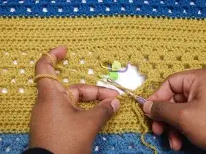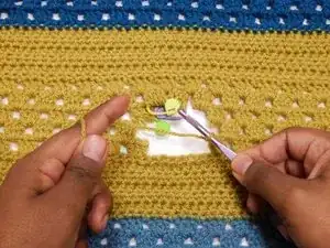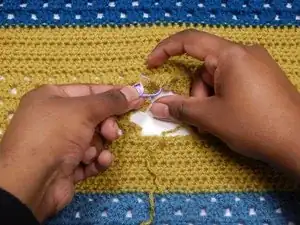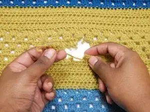 Осторожно распустите любые порванные или поврежденные петли, которые отделились от основной части пледа.