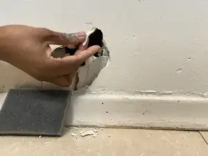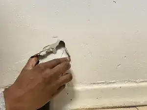 Сильно прижмите заплатку, чтобы обеспечить прочное сцепление со стеной.