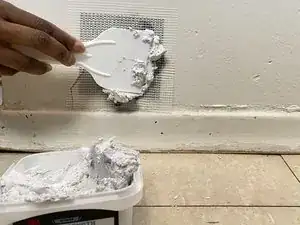 Нанесите смесь шпатлёвки за пределы заплатки, которую необходимо закрыть.
