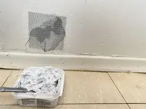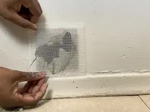 Если на поверхности есть обои, удалите их на участке, превышающем размер сетчатой заплатки.